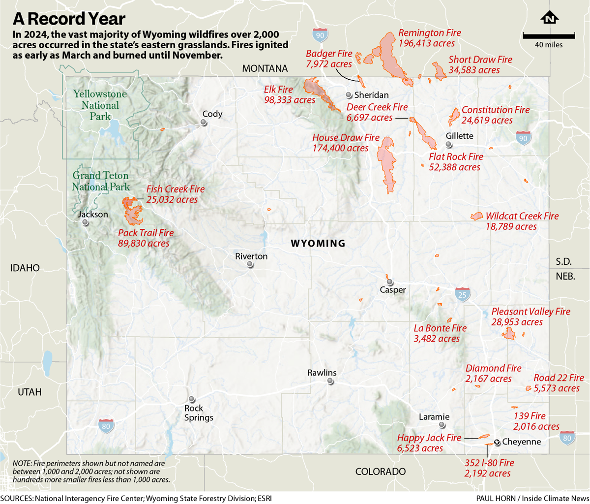 Last year’s fire season was less intense, but still above average in terms of acres burned. As legislators prepare to convene in Cheyenne next month for a legislative session, the pall of the 2024 wildfire season has spurred many constituencies across the state to ask for more funding to combat or prevent enormous blazes.