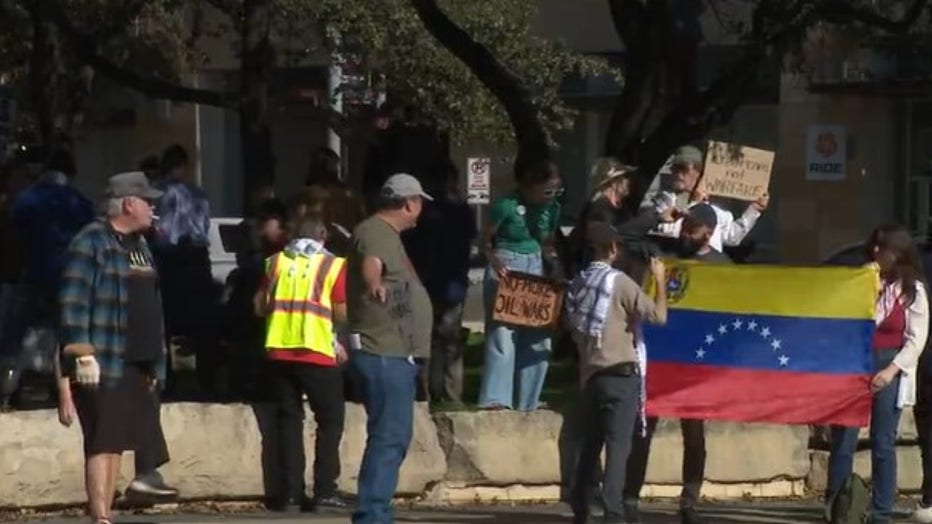 AUSTIN, Texas – Demonstrators gathered in front of Austin City Hall on Sunday to protest the U.S. bombing of Venezuela over the weekend and the capture of President Nicolás Maduro.
