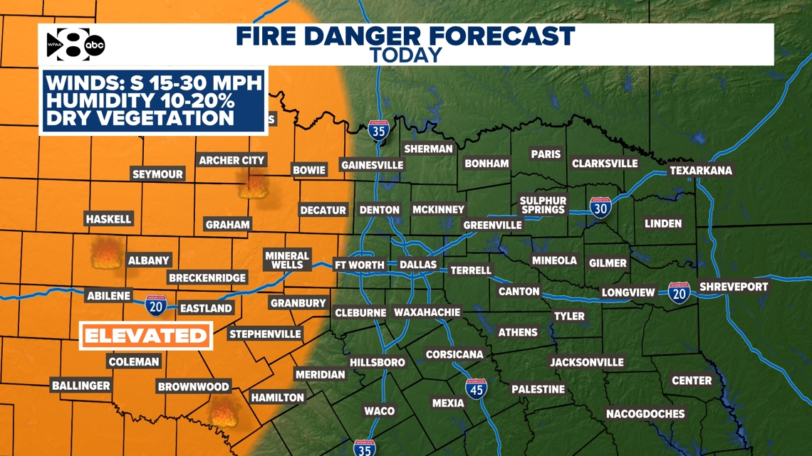 An elevated fire danger exists in our western counties due to warmer weather, dry vegetation and wind gusts that could at times top 30 mph. Be sure to avoid activities that lead to sparks!